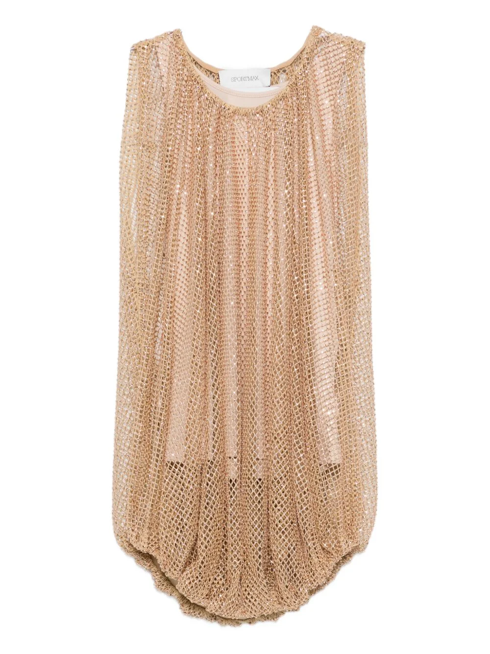 SPXNODO gathered-hem top Highlights - Beige - Net overlay - Sleeveless - Round neck - Gathered hem - Relaxed fit Imported Composition Viscose 100%, Polyester 95%, Spandex/Elastane 5% SIZE & FIT Model measurements Height 5 ft 10 in(1.78 m) Bust/Chest 31.49 in(80 cm) Hips 37 in(94 cm) Waist 23.62 in(60 cm) Washing instructions Machine Wash