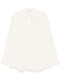 Tonale shirt Highlights - White - Silk - Crepe de chine - Concealed front button fastening - Straight-point collar - Drop shoulder - Long sleeves - Buttoned cuffs - Chest patch pocket - Box-pleat detail - Curved hem Imported Composition Silk 100% SIZE & FIT Model measurements Height 5 ft 10 in(1.77 m) Bust/Chest 33.07 in(84 cm) Hips 37 in(94 cm) Waist 24.8 in(63 cm) FittingInformation Designed to be unstructured, offering a loose fit throughout Made from a lightweight non-stretch fabric
