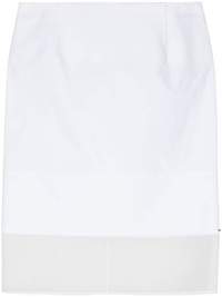 transparent-panel poplin skirt Highlights - White - Cotton/silk - Poplin texture - Panelled design - Transparent panel detail - Single crystal detail - Mid-rise - Concealed rear hook and zip fastening - Partial lining - Straight hem Made in Italy Composition Lining: Cotton 100% Outer: Silk 100%, Cotton 100%