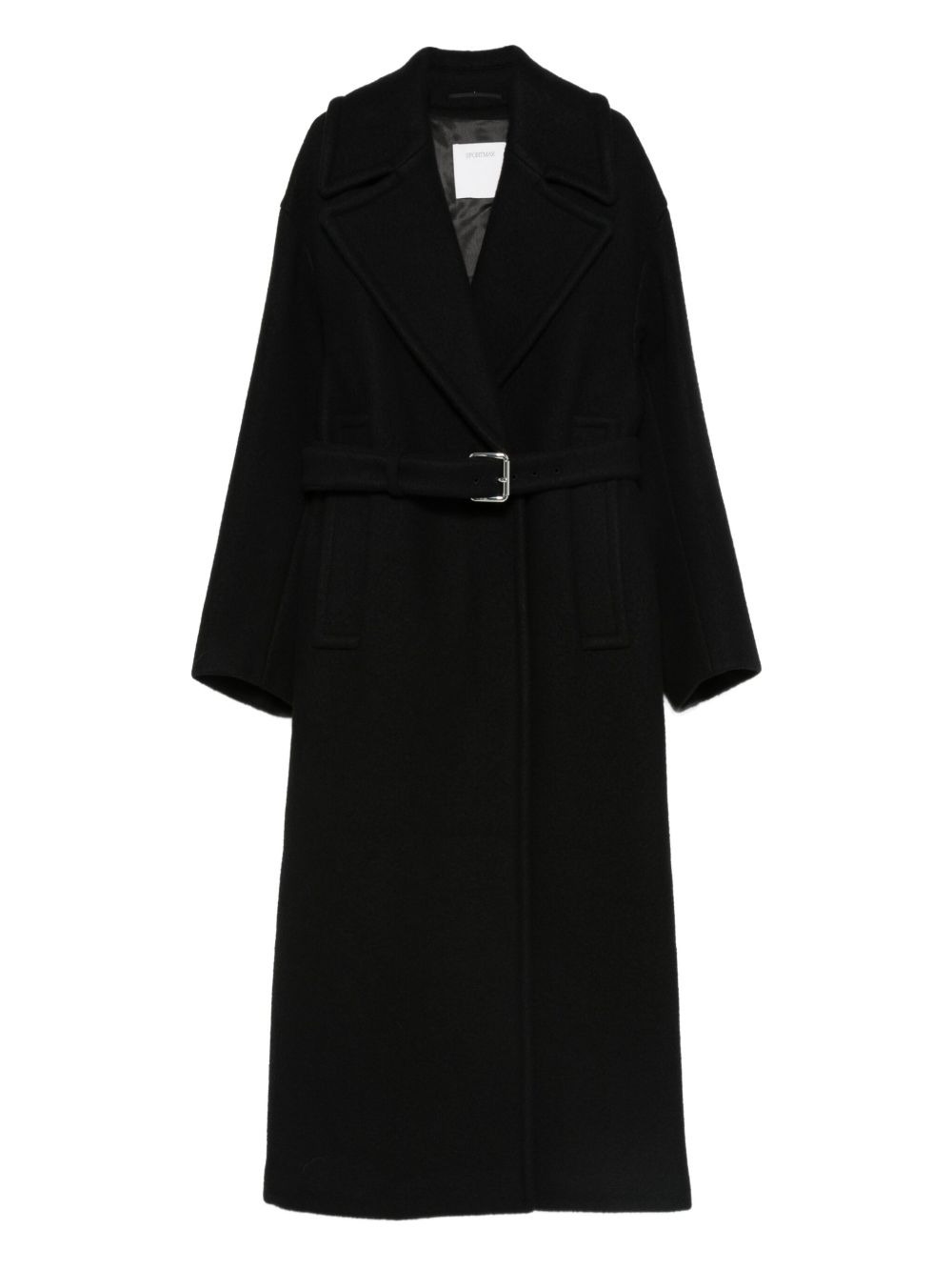 virgin-wool belted coat Highlights - Black - Lapel collar - Belted waist - Side welt pockets - Long sleeves - Mid-length Imported Composition Virgin Wool 100% Washing instructions Read Manufacturer Guidelines