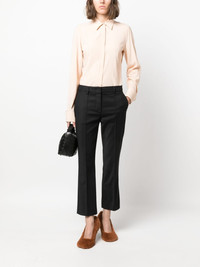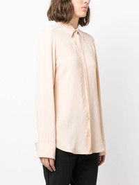 Yen long-sleeve shirt Highlights - Blush beige - Classic collar - Concealed front button fastening - Long sleeves - Buttoned cuffs - Curved hem Made in Italy Composition Acetate 84%, Silk 10%, Spandex/Elastane 6% SIZE & FIT Model measurements Height 5 ft 10 in(1.79 m) Bust/Chest 32.67 in(83 cm) Hips 34.25 in(87 cm) Waist 24.4 in(62 cm) FittingInformation Designed for a relaxed fit, this piece allows for comfort and movement when worn Made from a midweight non-stretch fabric, this piece offers minimal elasticity when worn This piece fits true to size – take your usual size