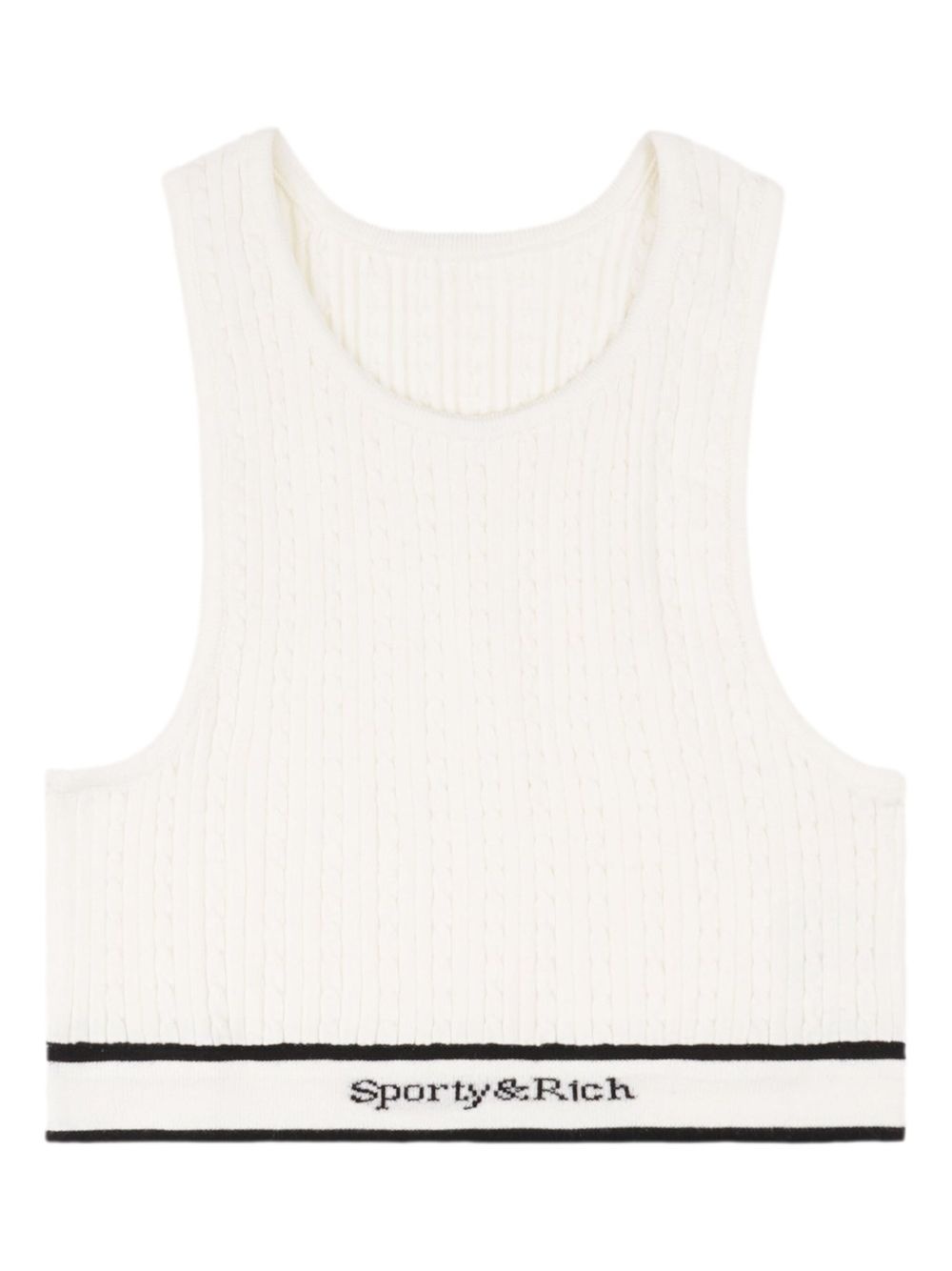 cable-knit sports bra Highlights - Off-white - Logo underband - Crew neck - Racerback - Cropped Imported Composition Viscose 70%, Polyester 30%