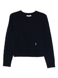 cable-knit sweate Highlights - Dark navy - Cable knit - Logo detail - Round neck - Long sleeves - Ribbed hem Imported Composition Cashmere 70%, Wool 30% SIZE & FIT Model measurements Height 5 ft 10 in(1.78 m) Bust/Chest 31.49 in(80 cm) Hips 37 in(94 cm) Waist 23.62 in(60 cm) Washing instructions Hand Wash