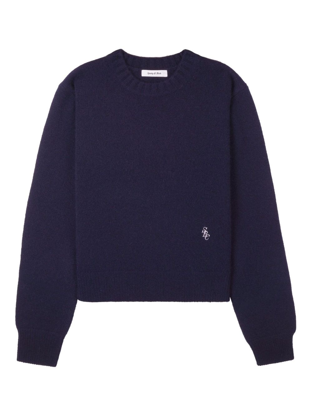 cashmere-blend jumper Highlights - Navy blue - Embroidered logo to the front - Ribbed trim - Crew neck Imported Composition Cashmere 70%, Wool 30% Washing instructions Read Manufacturer Guidelines