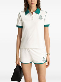 contrast-collar polo top Highlights - White - Short sleeves - Contrast collar - Button fastening Imported Composition Cotton 97%, Elastane 3% Washing instructions Read Manufacturer Guidelines
