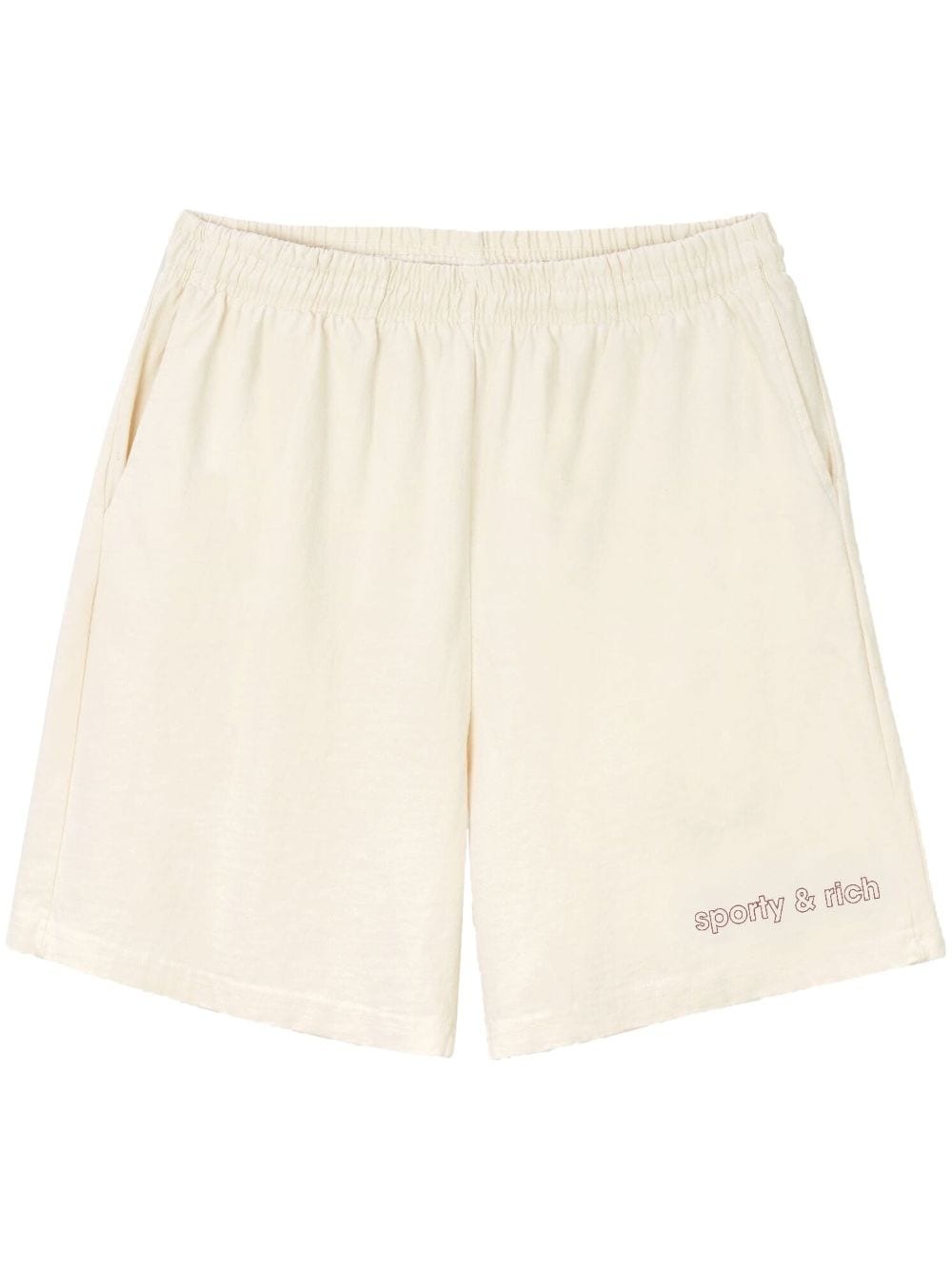 embroidered-logo cotton shorts Highlights - Cotton - Cream white - Jersey fleece - Embroidered logo - Elasticated waistband - Two side inset pockets - Rear patch pocket Made in United States Composition Cotton 100%