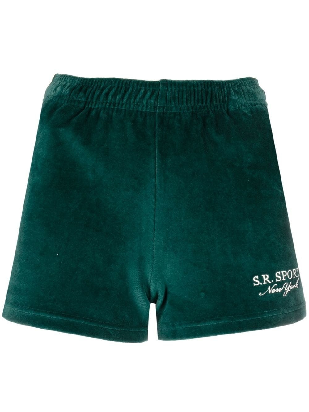 embroidered-logo velour shorts forest green cotton velour embroidered logo to the side elasticated waistband two side inset pockets rear patch pocket Imported Composition Cotton 100% SIZE & FIT Model measurements Height 5 ft 10 in(1.78 m) Bust/Chest 33.07 in(84 cm) Hips 35.82 in(91 cm) Waist 25.98 in(66 cm)