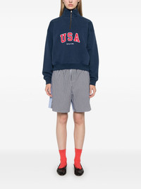 embroidered-motif sweatshirt Highlights - Navy blue - Cotton - Jersey texture - Embroidered motif to the front - Half front zip fastening - High neck - Long sleeves - Ribbed cuffs and hem - Two side welt pockets - Fleece lining Imported Composition Cotton 100% SIZE & FIT Model measurements Height 5 ft 9 in(1.75 m) Bust/Chest 31.88 in(81 cm) Hips 34.64 in(88 cm) Waist 24.01 in(61 cm) FittingInformation Designed to be unstructured, offering a loose fit throughout Made from a midweight non-stretch fabric, this piece offers minimal elasticity when worn