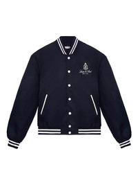 embroidered satin varsity jacket Highlights - Dark navy - Satin fabric - Ribbed trims - Embroidered logo - Button fastening - Welt pockets Imported Composition Polyester 100% Washing instructions Read Manufacturer Guidelines
