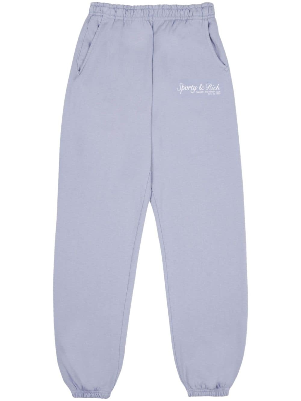 French cotton track pants Highlights - Periwinkle blue - Cotton - Garment dyed - Logo print at the leg - Elasticated waistband - Two side inset pockets - Rear patch pocket - Elasticated ankles - When buying this unisex item, keep in mind that it is graded in standard men's sizing Made in United States Composition Cotton 100%