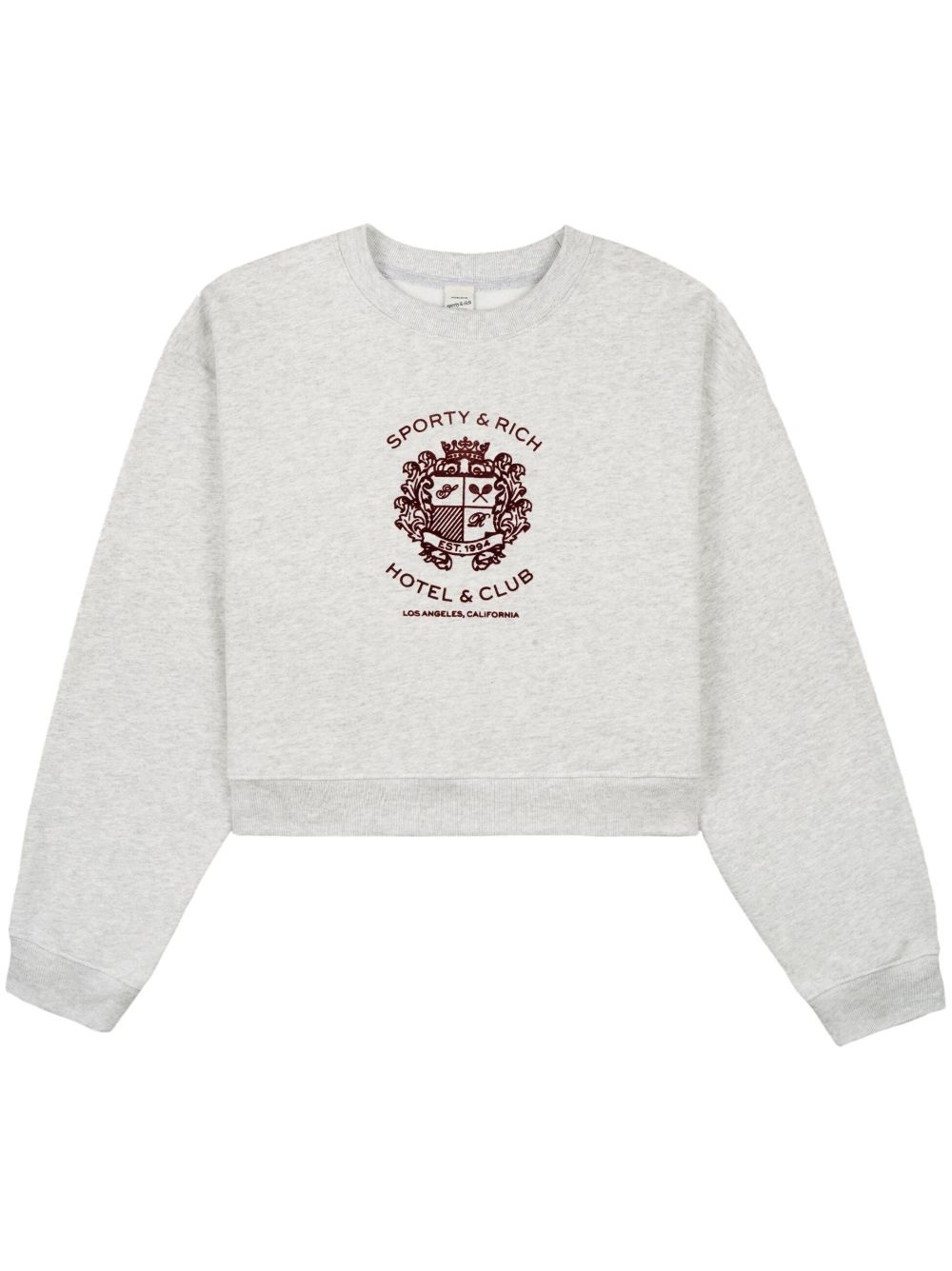 Hotel crest-motif sweatshirt Highlights - Light grey - Cotton blend - Jersey texture - Crest motif - Crew neck - Long sleeves - Fitted-cuff sleeves - Straight hem Made in United States Composition Cotton 98%, Polyester 2% Washing instructions Read Manufacturer Guidelines