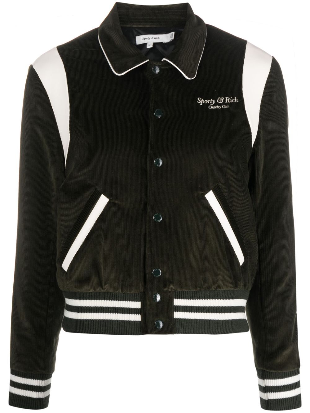 logo-embroidered cotton bomber jacket Highlights - Green - Cotton - Corduroy - Embroidered logo - Front button fastening - Two front welt pockets - Spread collar - Long sleeves - Ribbed cuffs and hem Imported Composition Outer: Cotton 100% Lining: Polyester 50%, Viscose 50% SIZE & FIT Model measurements Height 5 ft 10 in(1.79 m) Bust/Chest 32.67 in(83 cm) Hips 34.25 in(87 cm) Waist 24.4 in(62 cm) FittingInformation Designed for a slim fit that sits just away from the body offering a close yet comfortable fit The ribbed hem offers a close, comfortable fit Made from a midweight non-stretch fabric This piece fits true to size – take your usual size