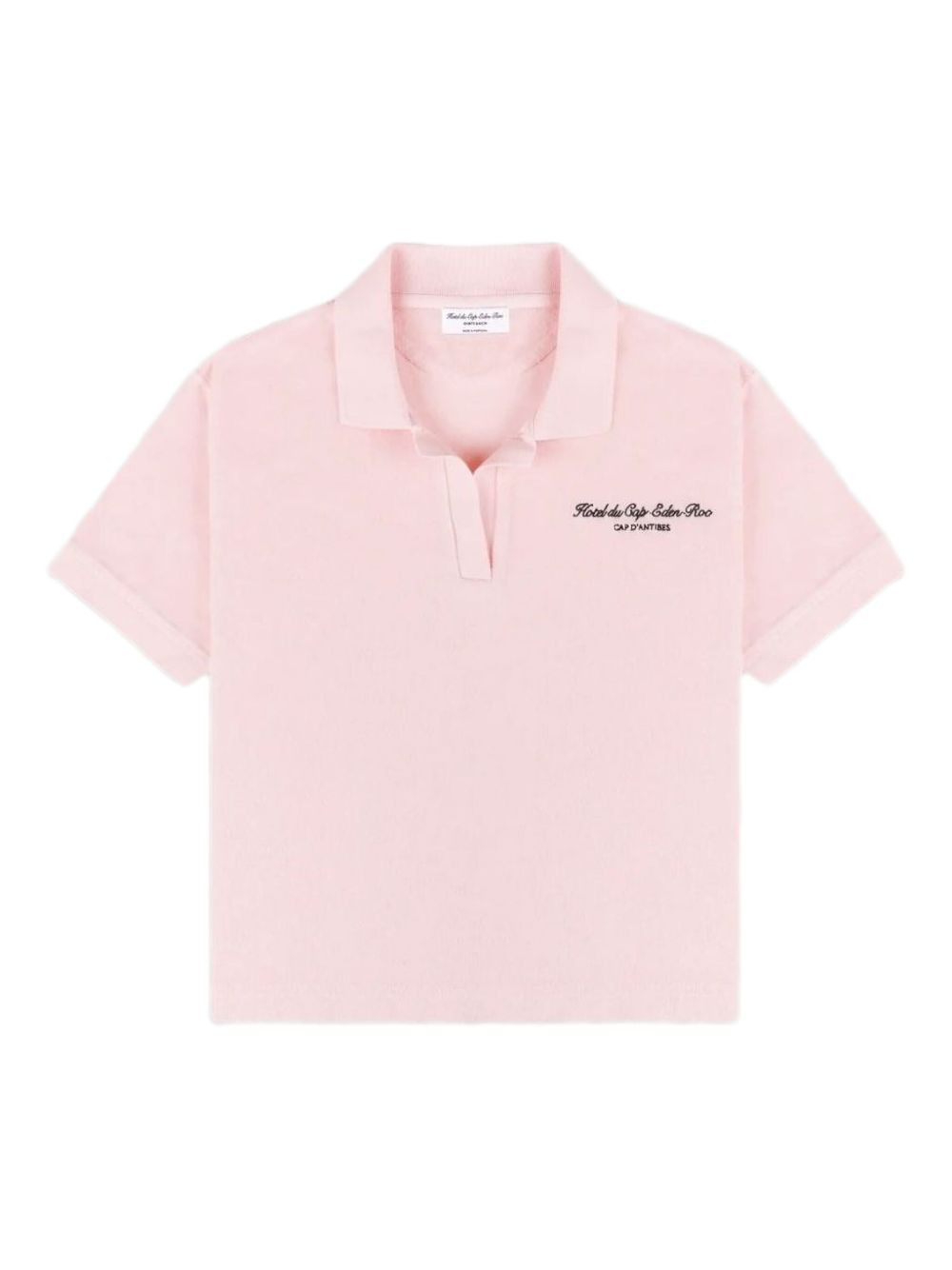 logo-embroidered polo top Highlights - Light pink - Embroidered detail - Polo collar - Short sleeves - Textured finish Imported Composition Cotton 100% Washing instructions Read Manufacturer Guidelines