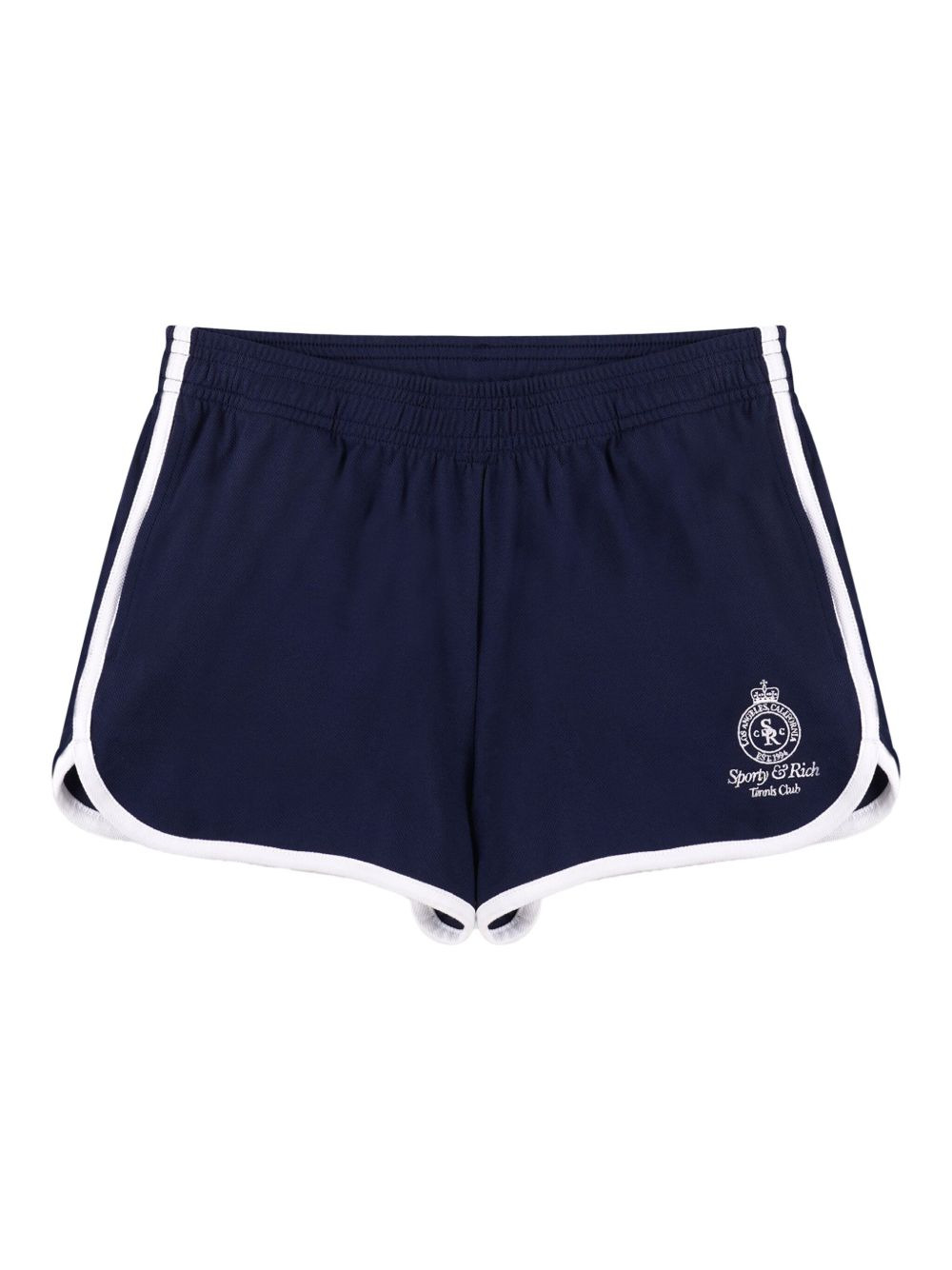 logo-embroidered shorts Highlights - Dark navy - Elasticated waistband - Embroidered logo - Back pocket - Curved hemline Imported Composition Cotton 97%, Elastane 3% Washing instructions Read Manufacturer Guidelines