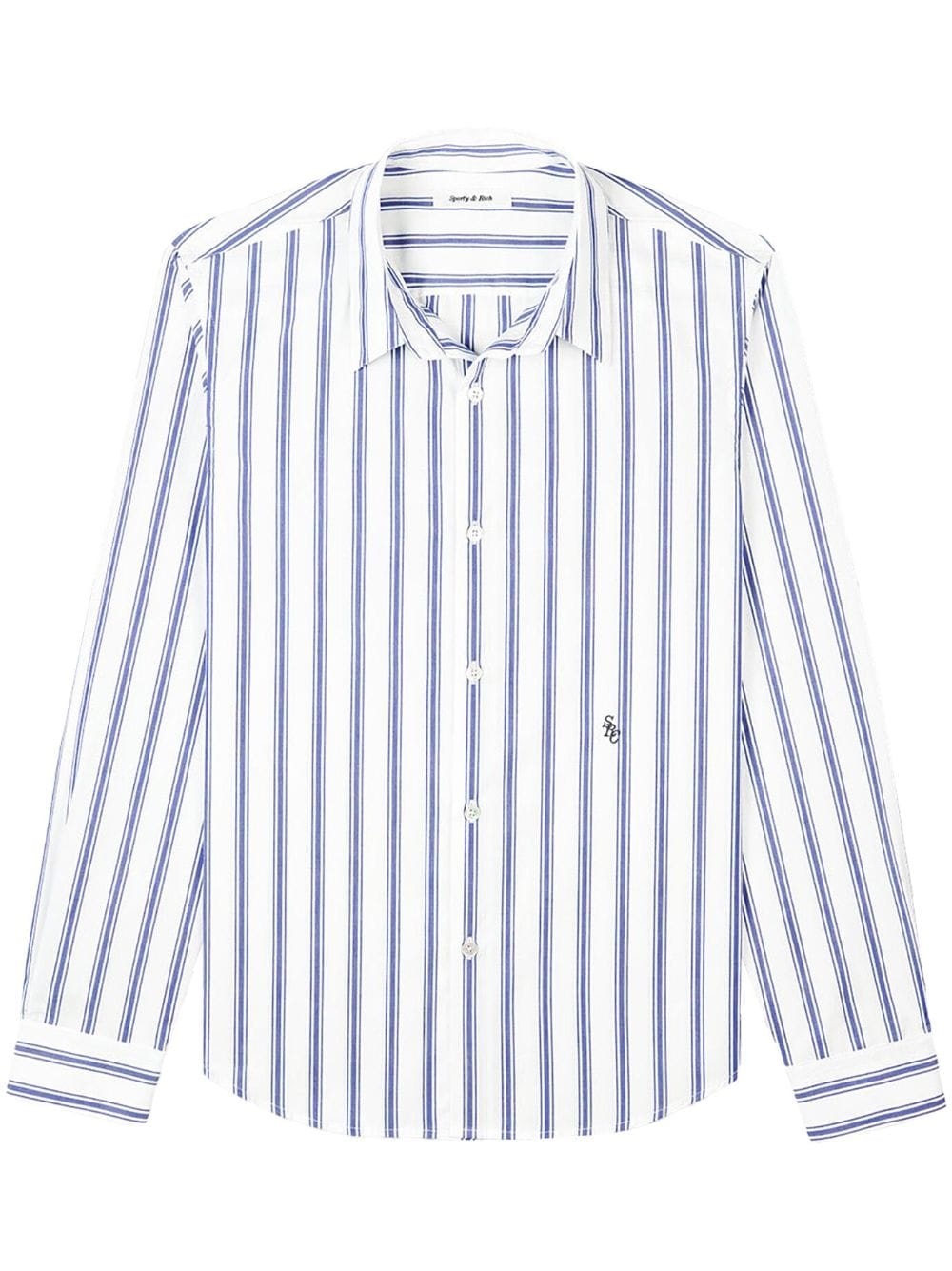 logo-embroidered striped shirt Highlights - Blue/white - Cotton - Embroidered logo to the front - Vertical stripe pattern - Classic collar - Front button fastening - Long sleeves - Buttoned cuffs - Curved hem - When buying this unisex item, keep in mind that it is graded in standard men's sizing. Imported Composition Cotton 100%