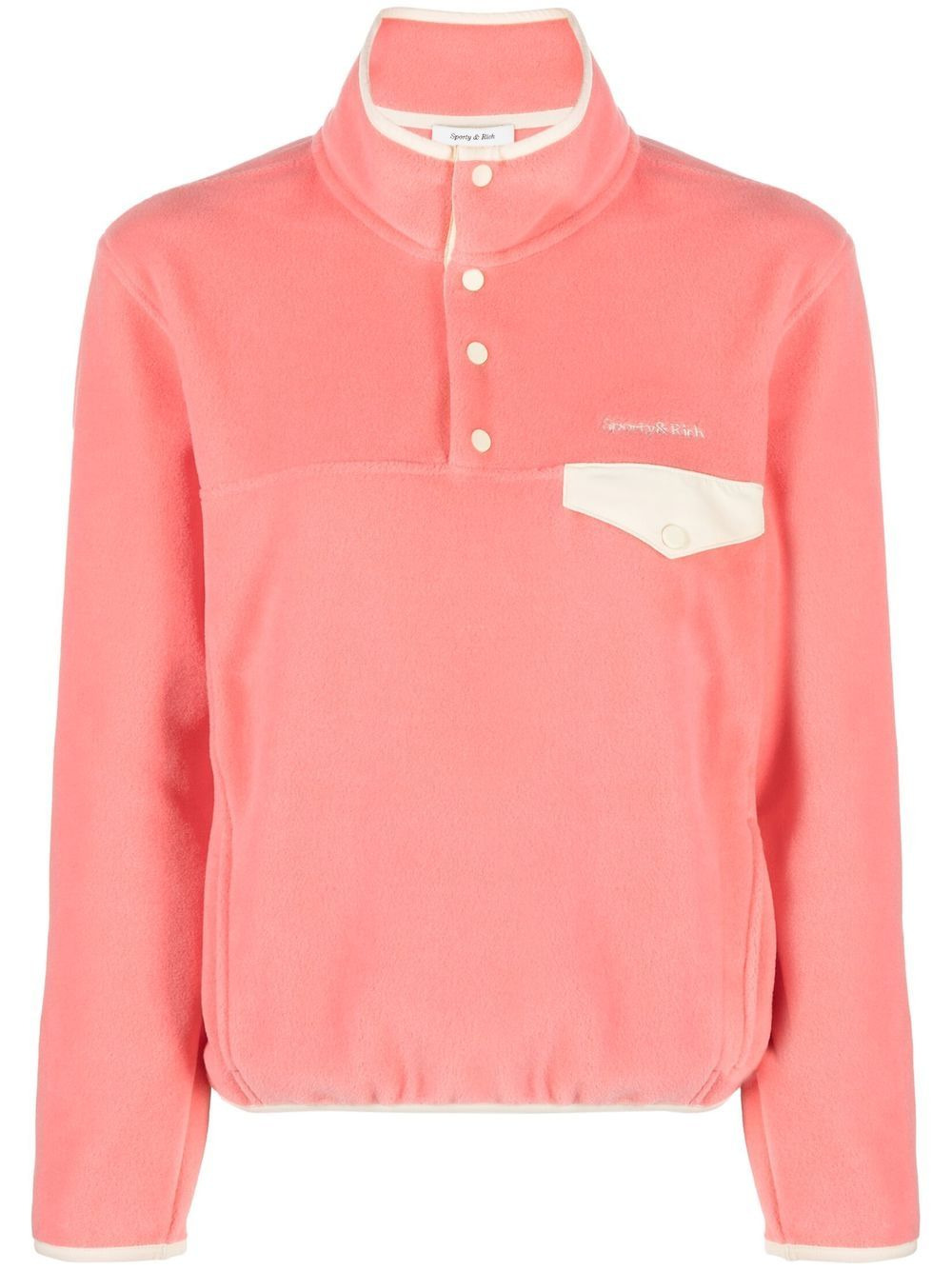 logo-embroidered sweatshirt This sweatshirt from Sporty & Rich demonstrates the label’s lean toward athleisure. Presented in a pink hue, it’s detailed with a contrasting white logo and features a half-button placket at the front in a nod to retro sportswear fleeces. Highlights - Light pink - Embroidered logo at the chest - High neck - Front button placket - Long sleeves - Elasticated cuffs - Two side inset pockets - Chest flap pocket - Elasticated hem Imported Composition Polyester 100% SIZE & FIT Model measurements Height 5 ft 10 in(1.78 m) Bust/Chest 29.92 in(76 cm) Hips 34.64 in(88 cm) Waist 23.62 in(60 cm) FittingInformation This piece fits true to size. We recommend you get your regular size Cut for a relaxed fit Made with a mid-weight fabric Washing instructions Dry Clean Only