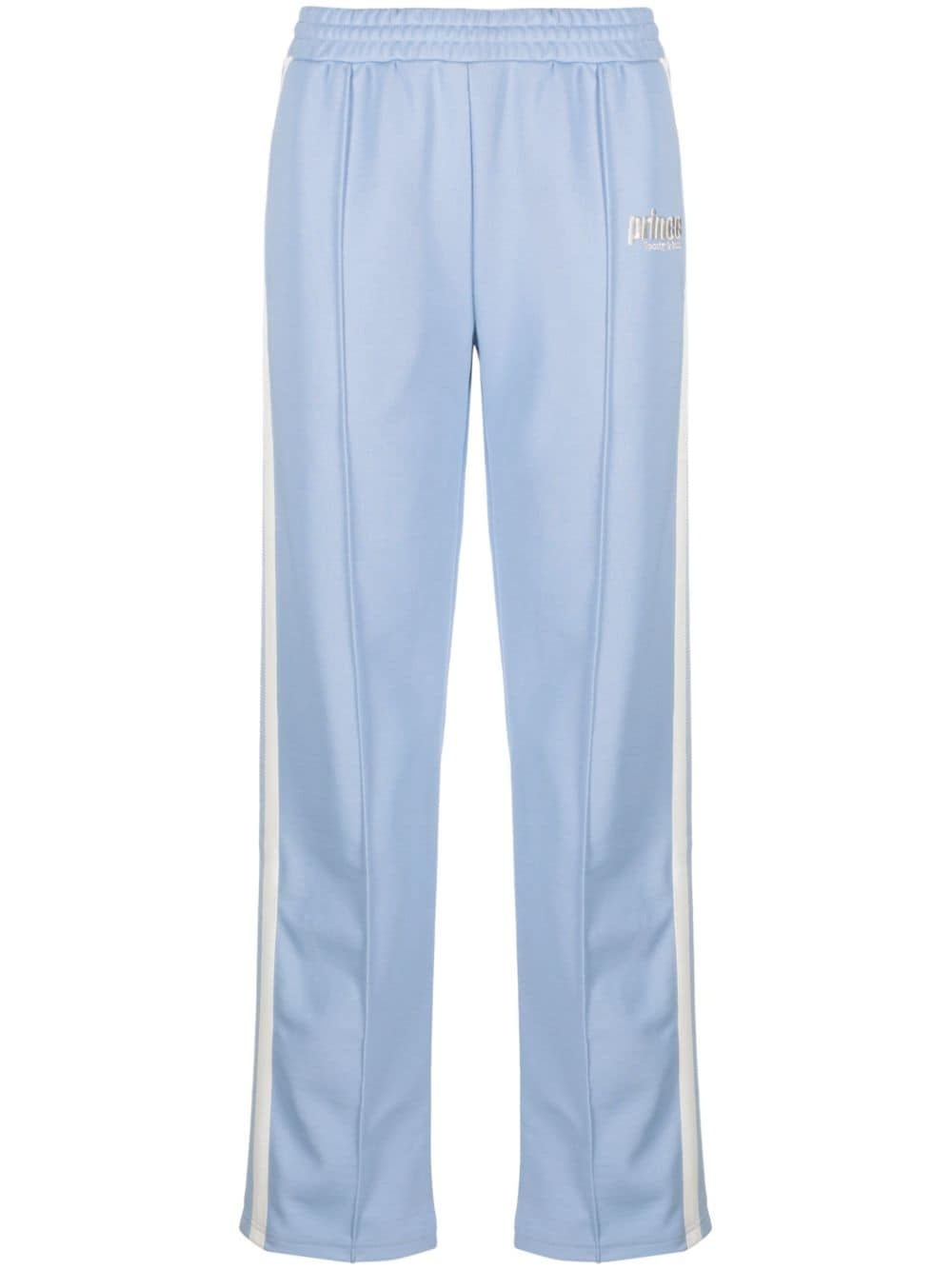 logo-embroidered track pants Highlights - Light blue/white - Side stripe detailing - Embroidered logo to the front - Elasticated waistband - Straight leg - Straight hem Imported Composition Polyester 52%, Cotton 48% SIZE & FIT Model measurements Height 5 ft 10 in(1.78 m) Bust/Chest 31.49 in(80 cm) Hips 35.03 in(89 cm) Waist 23.62 in(60 cm) FittingInformation Designed for a relaxed tapered cut, these trousers allow for a close fit at the waist and offer a loose fit at the thighs, with a closer fit toward the ankles Adjust this piece’s waistband to your preference using the drawstring Made from a midweight non-stretch fabric, this piece offers minimal elasticity when worn This piece fits true to size – take your usual size