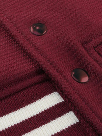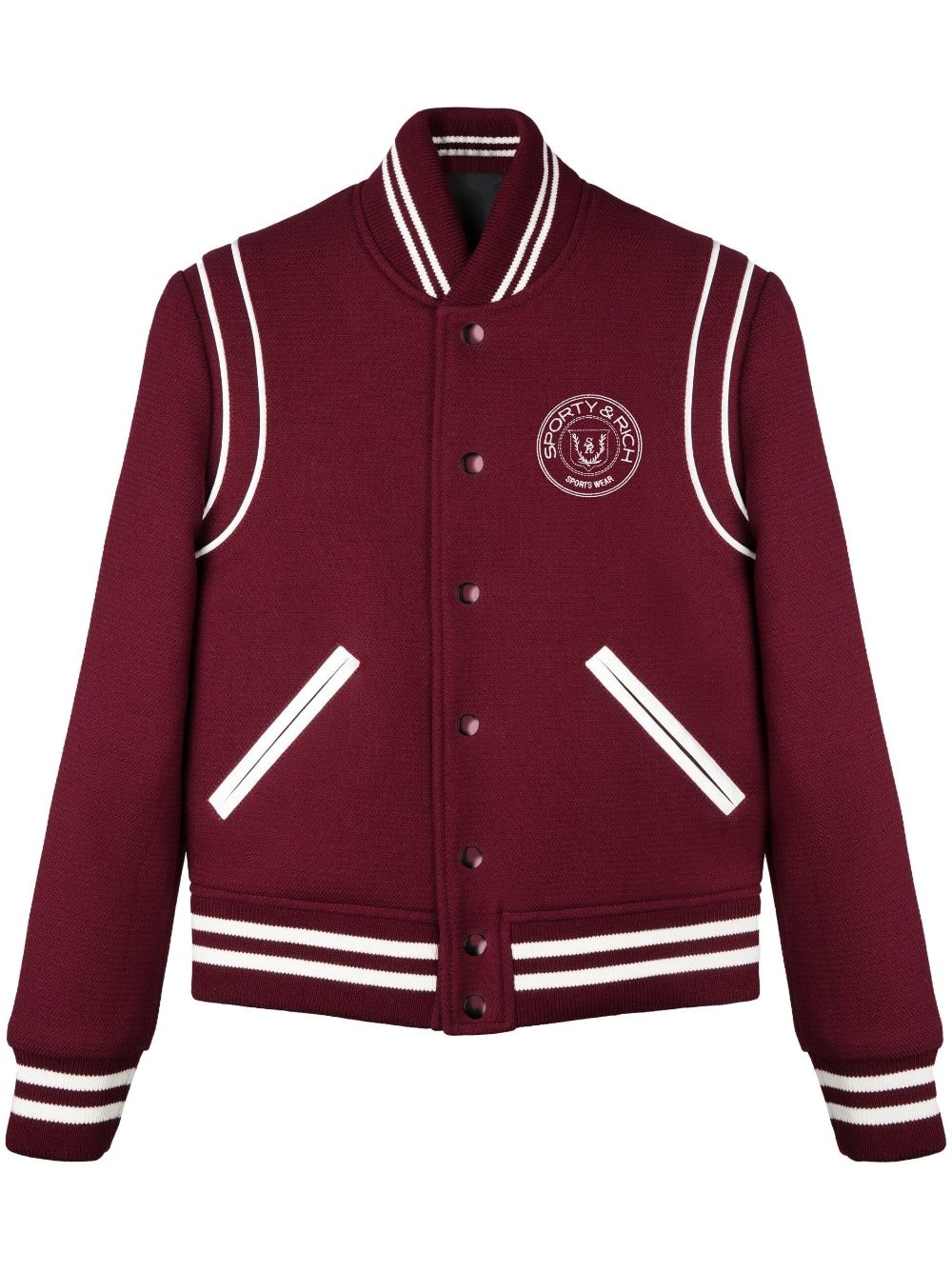 logo embroidered varsity jacket Highlights - Bordeaux red/cloud white - Wool blend - Ribbed detailing - Embroidered logo - Stripe detailing - Baseball collar - Front press-stud fastening - Two side slit pockets - When buying this unisex item, keep in mind that it is graded in standard men's sizing. Imported Composition Wool 83%, Polyamide 17% Washing instructions Read Manufacturer Guidelines