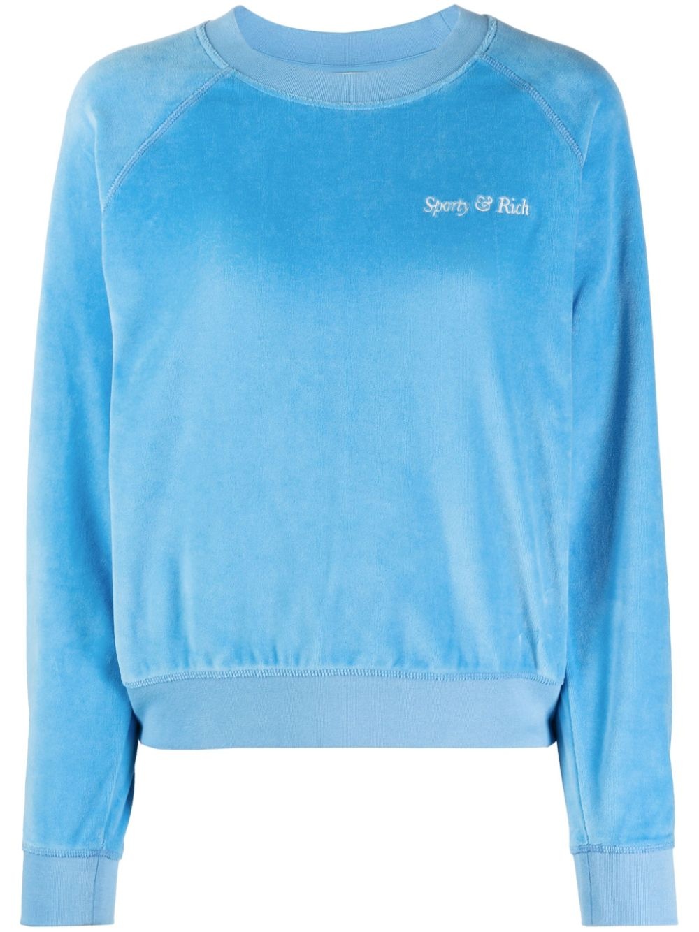 logo-embroidered velvet sweatshirt Highlights - Sky blue - Cotton - Velvet finish - Embroidered logo at the chest - Crew neck - Long raglan sleeves - Ribbed cuffs and hem Imported Composition Cotton 100% SIZE & FIT Model measurements Height 5 ft 10 in(1.77 m) Bust/Chest 29.92 in(76 cm) Hips 34.25 in(87 cm) Waist 23.62 in(60 cm) FittingInformation Designed for a relaxed fit, this piece allows for comfort and movement when worn Made from a midweight non-stretch fabric, this piece offers minimal elasticity when worn This piece fits true to size – take your usual size