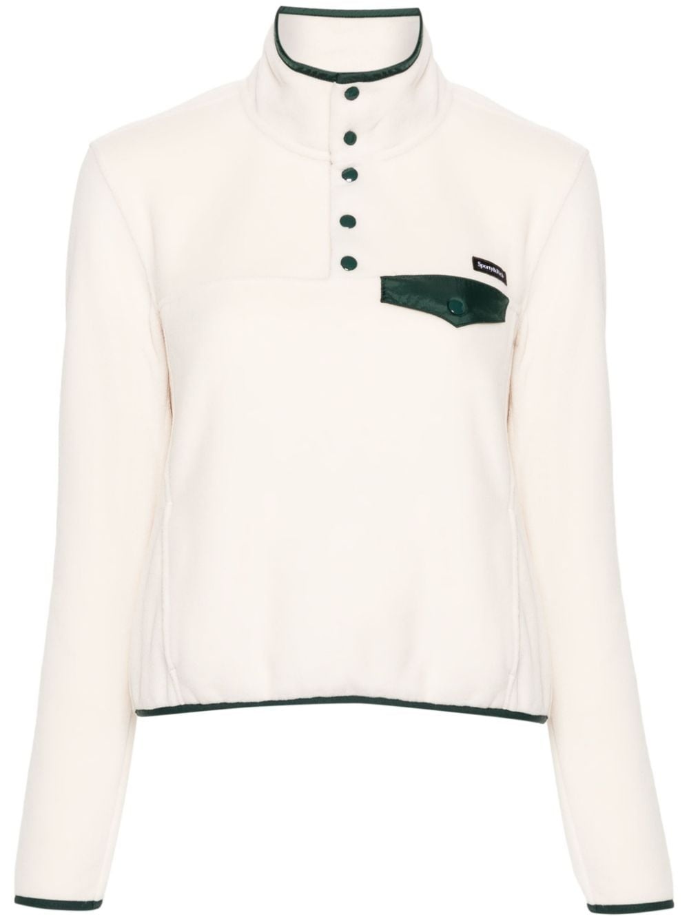 logo-patch fleece top Highlights - Cream white/forest green - Fleece texture - Contrasting trim - Panelled design - Logo patch at the chest - Stand-up collar - Short front press-stud fastening - Long sleeves - Elasticated cuffs - Chest flap pocket - Front pouch pocket - Elasticated hem - Unlined Imported Composition Polyester 100% SIZE & FIT Model measurements Height 5 ft 11 in(1.8 m) Bust/Chest 32.67 in(83 cm) Hips 36.22 in(92 cm) Waist 24.4 in(62 cm) FittingInformation Designed for a relaxed fit, this piece allows for comfort and movement when worn Made from a midweight non-stretch fabric, this piece offers minimal elasticity when worn This piece fits true to size – take your usual size