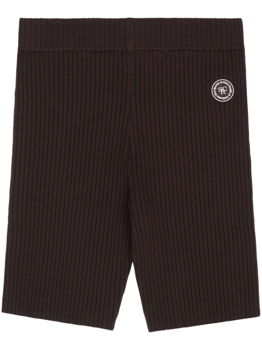 logo-patch ribbed biker shorts Highlights - Chocolate brown - Fine ribbed - Logo patch to the front - High-waisted - Straight hem - Thigh-length Imported Composition Viscose 100%