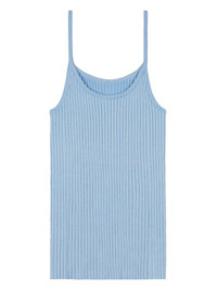 logo-patch ribbed tank top Highlights - Periwinkle blue - Fine ribbed - Logo patch to the front - Round neck - Spaghetti straps - Straight hem Imported Composition Viscose 100% Washing instructions Read Manufacturer Guidelines