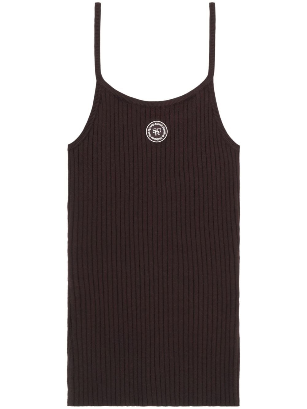 logo-patch ribbed tank top Highlights - Chocolate brown - Ribbed knit - Logo patch at the chest - Round neck - Spaghetti straps - Sleeveless - Straight hem Imported Composition Viscose 100%