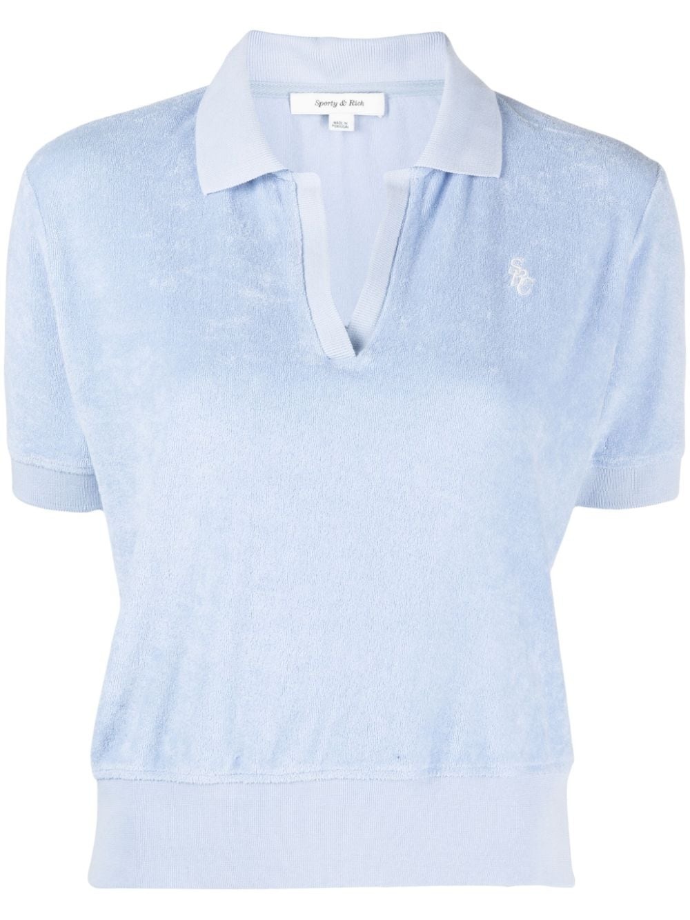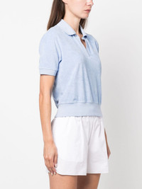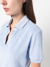 logo-patch V-neck polo shirt Highlights - Pastel blue - Terry-cloth effect - Spread collar - V-neck - Ribbed cuffs and hem - Logo patch to the front - Straight hem Imported Composition Cotton 100% SIZE & FIT Model measurements Height 5 ft 10 in(1.78 m) Bust/Chest 33.46 in(85 cm) Hips 36.22 in(92 cm) Waist 23.22 in(59 cm) FittingInformation Designed for a relaxed fit, this piece allows for comfort and movement when worn The ribbed hem offers a close, comfortable fit Made from a midweight non-stretch fabric, this piece offers minimal elasticity when worn This piece fits true to size – take your usual size Washing instructions Machine Wash