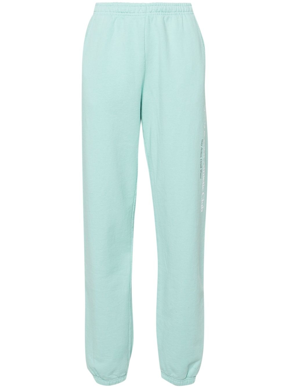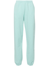 logo-print cotton track pants Highlights - Aqua blue/white - Cotton - Jersey texture - Logo print at the leg - Elasticated waistband with internal drawstring - Two side slash pockets - Rear patch pocket - Tapered leg - Elasticated ankles - French terry lining - This unisex item is graded in women's sizing. please check measurement details. Made in United States Composition Cotton 100% SIZE & FIT Model measurements Height 5 ft 10 in(1.78 m) Bust/Chest 31.49 in(80 cm) Hips 37 in(94 cm) Waist 23.62 in(60 cm) FittingInformation Designed for a relaxed tapered cut, these trousers allow for a close fit at the waist and offer a loose fit at the thighs, with a closer fit toward the ankles The elasticated waist and hem offer a secure, comfortable fit Made from a midweight non-stretch fabric, this piece offers minimal elasticity when worn This piece fits true to size – take your usual size Washing instructions Machine Wash