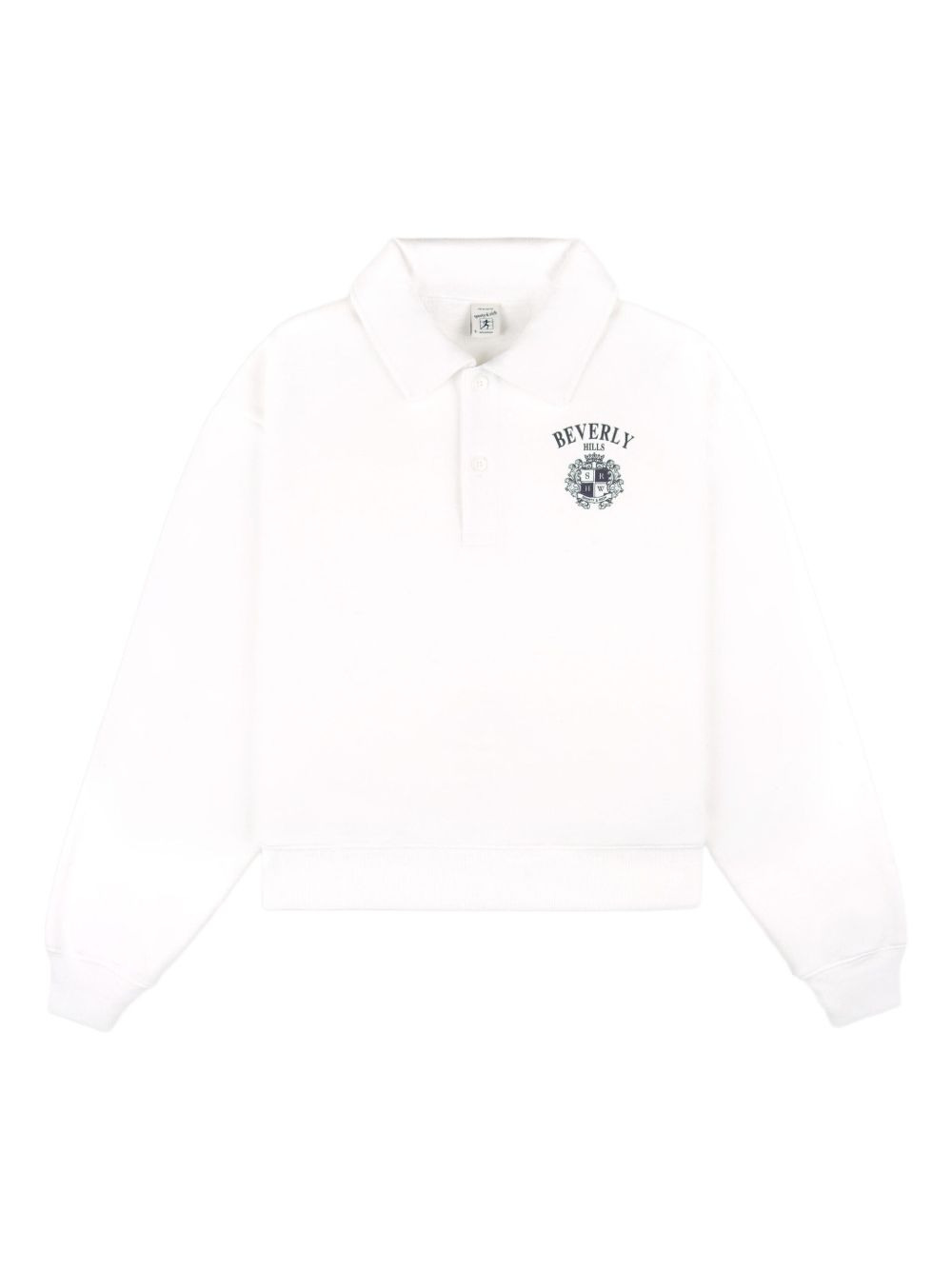 logo-print polo top Highlights - White - Short front button fastening - Polo collar - Long sleeves - Straight hem Imported Composition Polyester 50%, Cotton 50% Washing instructions Read Manufacturer Guidelines