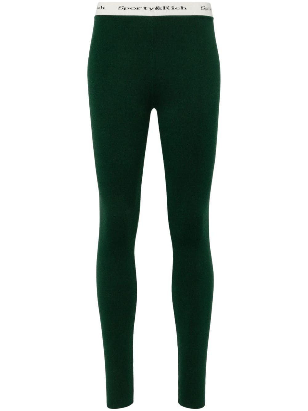 logo-waistband slip-on leggings Highlights - Dark green - Stretch-design - Logo waistband - Skinny cut - Slip-on style - Straight hem Imported Composition Viscose 53%, Cotton 37%, Spandex/Elastane 10% SIZE & FIT Model measurements Height 5 ft 11 in(1.8 m) Bust/Chest 32.67 in(83 cm) Hips 36.22 in(92 cm) Waist 24.4 in(62 cm) FittingInformation Designed for a close fit throughout The elasticated waist allows for a comfortable fit Made from a midweight stretch fabric, this piece offers elasticity and flexibility when worn This piece fits true to size – take your usual size Washing instructions Dry Clean Only