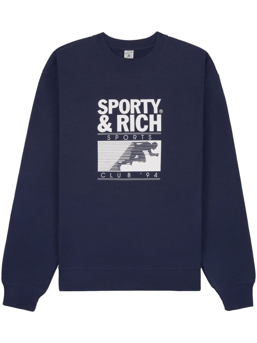 Motion Club logo-print sweatshirt Highlights - Navy blue/white - Cotton - Logo print to the front - Graphic print to the front - Crew neck - Drop shoulder - Long sleeves - Ribbed trim - Straight hem - When buying this unisex item, keep in mind that it is graded in standard men's sizing. Made in United States Composition Cotton 100%