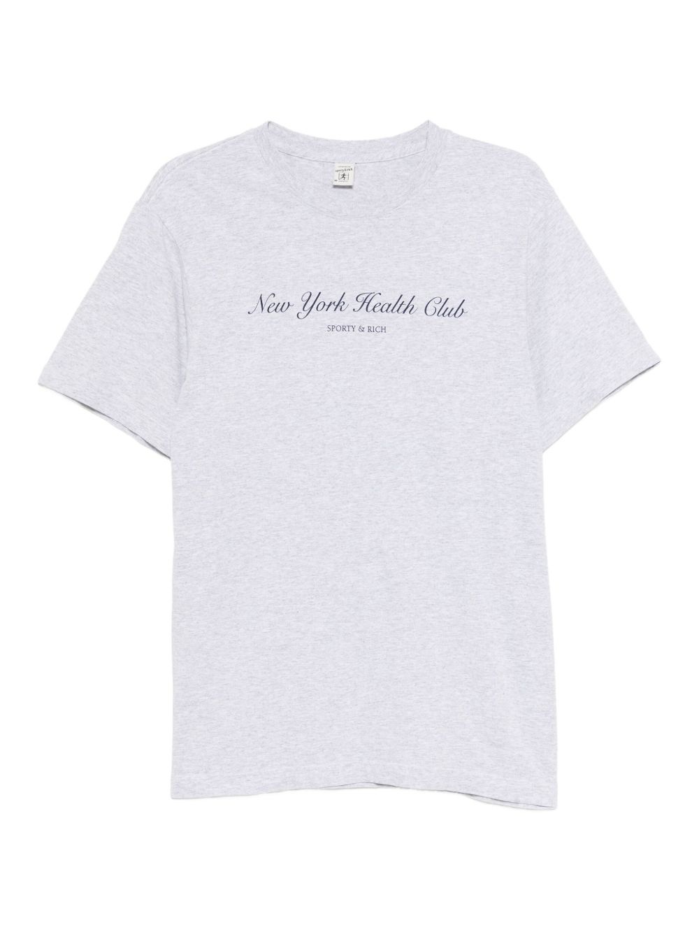 New York Health Club graphic tee Highlights - Heather grey - Crew neck - Short sleeves Made in United States Composition Cotton 97%, Polyester 3% SIZE & FIT Model measurements Height 5 ft 9 in(1.76 m) Bust/Chest 31.1 in(79 cm) Hips 35.03 in(89 cm) Waist 24.4 in(62 cm) FittingInformation Designed to be unstructured, offering a loose fit throughout Made from a midweight non-stretch fabric, this piece offers minimal elasticity when worn Washing instructions Machine Wash