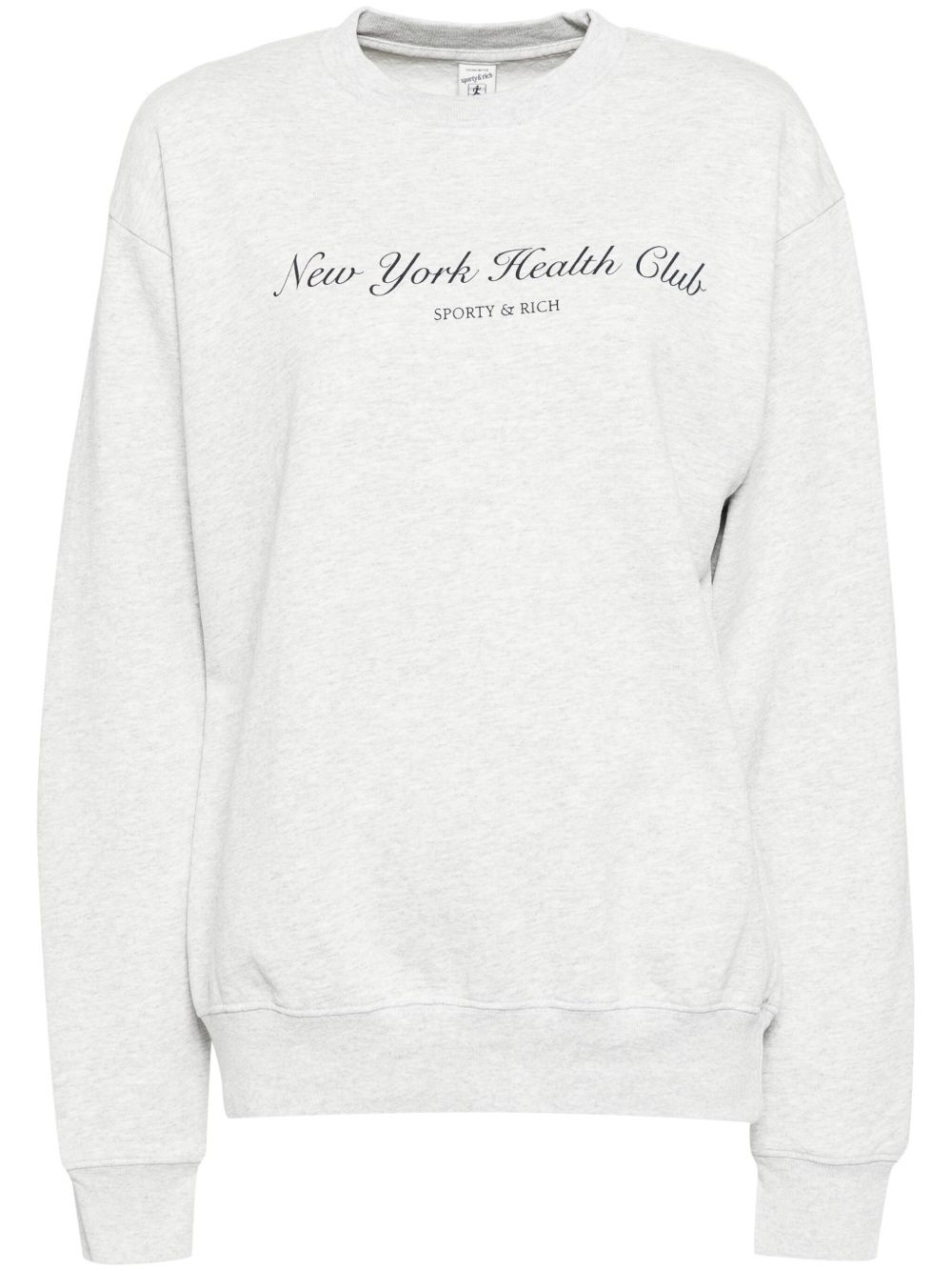 NY health club sweater Highlights - Heather grey - Crew neck - Logo print to the front - Ribbed cuffs and hem Made in United States Composition Cotton 100% SIZE & FIT Model measurements Height 5 ft 9 in(1.76 m) Bust/Chest 31.88 in(81 cm) Hips 33.85 in(86 cm) Waist 24.01 in(61 cm) FittingInformation Designed for a relaxed fit, this piece allows for comfort and movement when worn Made from a midweight non-stretch fabric, this piece offers minimal elasticity when worn