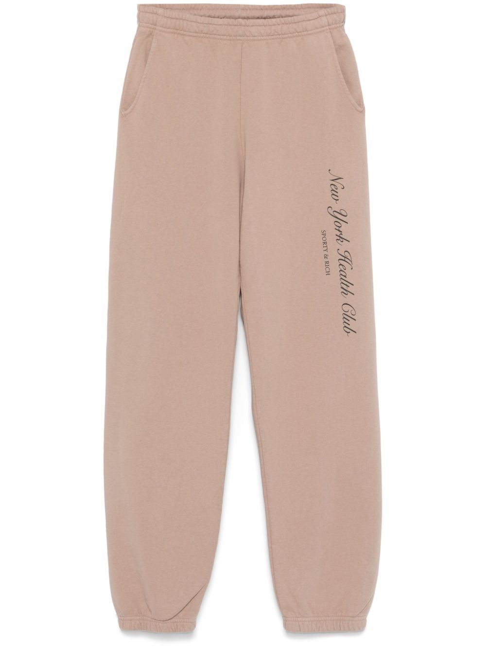NY Health Club sweatpants Highlights - Sand brown - Elasticated waistband with internal drawstring - Two side slash pockets - Rear patch pocket - When buying this unisex item, keep in mind that it is graded in standard men's sizing. Made in United States Composition Cotton 100% SIZE & FIT Model measurements Height 5 ft 10 in(1.77 m) Bust/Chest 32.28 in(82 cm) Hips 35.03 in(89 cm) Waist 25.19 in(64 cm) FittingInformation This piece is unisex and is designed for a tapered-leg, whether you usually select women's or men's sizes Adjust this piece’s waistband to your preference using the drawstring Made from a midweight non-stretch fabric, this piece offers minimal elasticity when worn