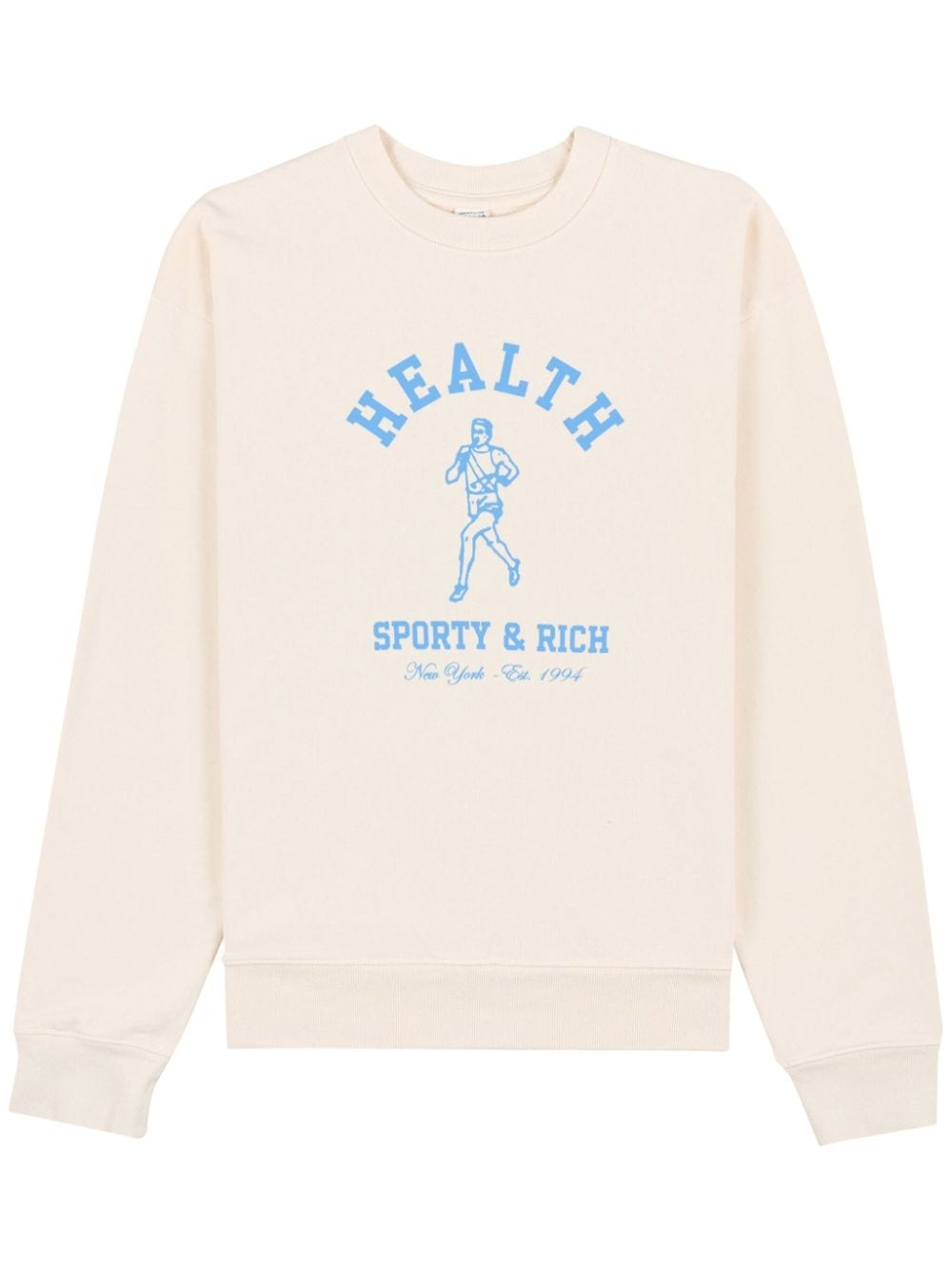 NY Running Club cotton sweatshirt Highlights - Cream white/sky blue - Cotton - Logo print to the front - Crew neck - Drop shoulder - Long sleeves - Ribbed trim - Straight hem - When buying this unisex item, keep in mind that it is graded in standard men's sizing. Made in United States Composition Cotton 100%