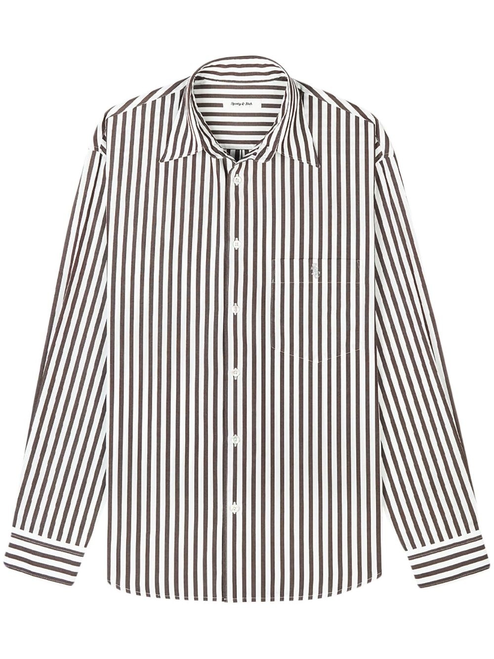 oversized striped cotton shirt Highlights - Chocolate brown/off-white - Cotton - Vertical stripe pattern - Spread collar - Front button fastening - Long sleeves - Buttoned cuffs - Curved hem - When buying this unisex item, keep in mind that it is graded in standard men's sizing. Imported Composition Cotton 100%