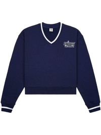 Prince Health cotton sweatshirt Highlights - Navy blue - Cotton - Soft jersey - Contrast trim - V-neck - Embroidered logo at the chest - Long sleeves - Straight hem Imported Composition Cotton 100% Washing instructions Read Manufacturer Guidelines