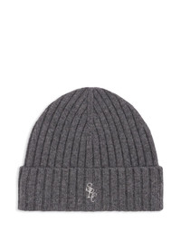 ribbed-knit beanie Highlights - Grey - Knitted construction - Turned-up brim - Embroidered logo - Soft stretch Imported Composition Cashmere 70%, Wool 30%