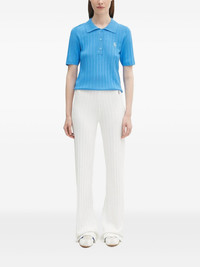 ribbed polo shirt Highlights - Blue - Short sleeves - Ribbed texture - Polo collar - Button fastening - Embroidered logo Imported Composition Rayon 65%, Nylon 35% Washing instructions Read Manufacturer Guidelines