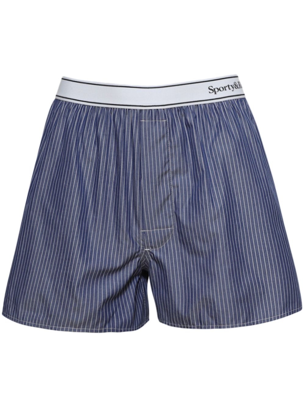 Serif Logo shorts Highlights - Navy blue/white - Cotton - Elasticated logo waistband - Vertical stripe pattern - Rear patch pocket Imported Composition Cotton 100%