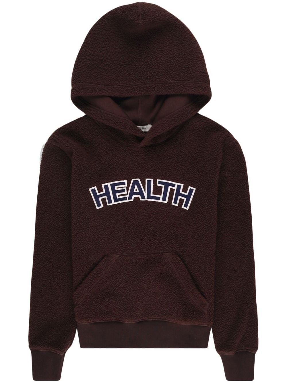 slogan-patch fleece hoodie Highlights - Chocolate brown - Fleece texture - Slogan patch to the front - Classic hood - Long sleeves - Elasticated cuffs - Front pouch pocket - Elasticated hem - When buying this unisex item, keep in mind that it is graded in standard men's sizing. Imported Composition Polyester 100%