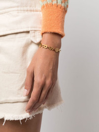 SR Tennis bracelet gold-tone metal gold-tone logo lettering chain-link detailing spring-ring fastening Imported SIZE & FIT Model measurements Height 5 ft 9 in(1.74 m) Bust/Chest 32.28 in(82 cm) Hips 35.82 in(91 cm) Waist 24.01 in(61 cm) Measurement Minimum Length 5.9 in(15 cm) TOTAL LENGTH 7.48 in(19 cm) WIDTH 0.39 in(1 cm)