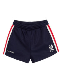 stripe logo shorts Highlights - Dark navy - Stripe detail - Elasticated waistband - Back pocket Imported Composition Polyester 52%, Cotton 48% Washing instructions Read Manufacturer Guidelines