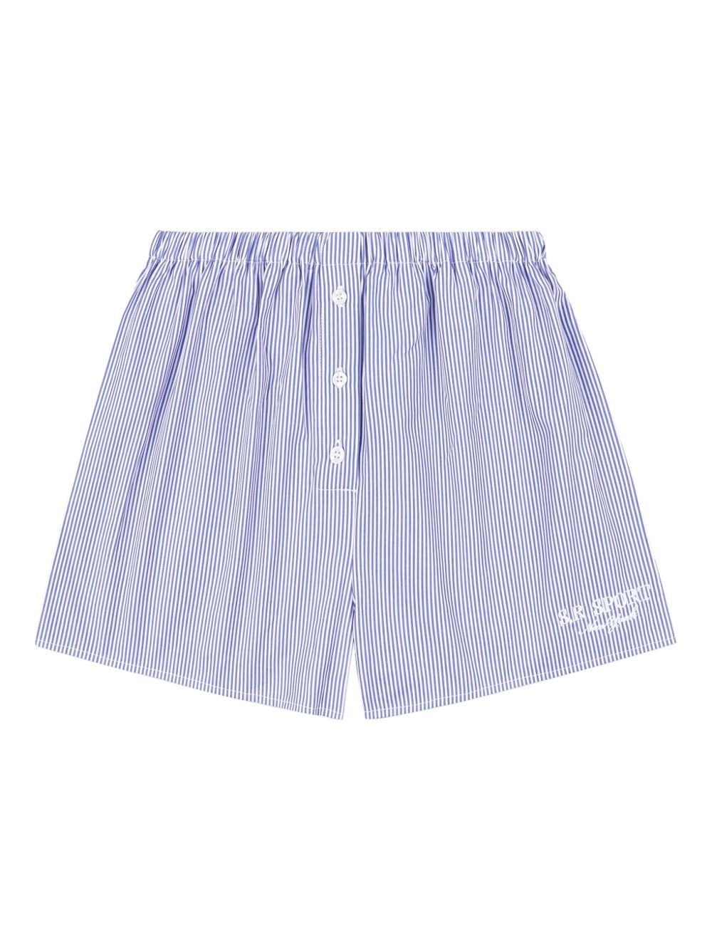 striped shorts Highlights - Light blue - Elasticated waist - Front button closure - Embroidered detailing - Side pockets - Relaxed fit Imported Composition Cotton 100%