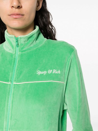 towelling-finish embroidered-logo jacket Highlights - Apple green - Cotton - Towelling finish - Embroidered logo at the chest - High neck - Front zip fastening - Long sleeves - Elasticated cuffs - Two front welt pockets - Elasticated hem Imported Composition Cotton 100% SIZE & FIT Model measurements Height 5 ft 10 in(1.79 m) Bust/Chest 33.07 in(84 cm) Hips 35.82 in(91 cm) Waist 24.01 in(61 cm) FittingInformation Designed for a relaxed fit, this piece allows for comfort and movement when worn The elasticated hem allows for movement and a comfortable fit Made from a midweight non-stretch fabric, this piece offers minimal elasticity when worn This piece fits true to size – take your usual size Washing instructions Machine Wash