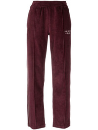 velour side-stripe track pants Highlights - Burgundy - Cotton - Velour - Embroidered logo to the side - Side stripe detailing - Elasticated waistband - Straight leg - When buying this unisex item, keep in mind that it is graded in standard men's sizing. Imported Composition Cotton 100% SIZE & FIT Model measurements Height 5 ft 10 in(1.77 m) Bust/Chest 31.1 in(79 cm) Hips 34.64 in(88 cm) Waist 25.19 in(64 cm) FittingInformation This piece fits true to size. We recommend you get your regular size Designed to be fitted at the waist and hips, loose over the leg Made with a mid-weight fabric