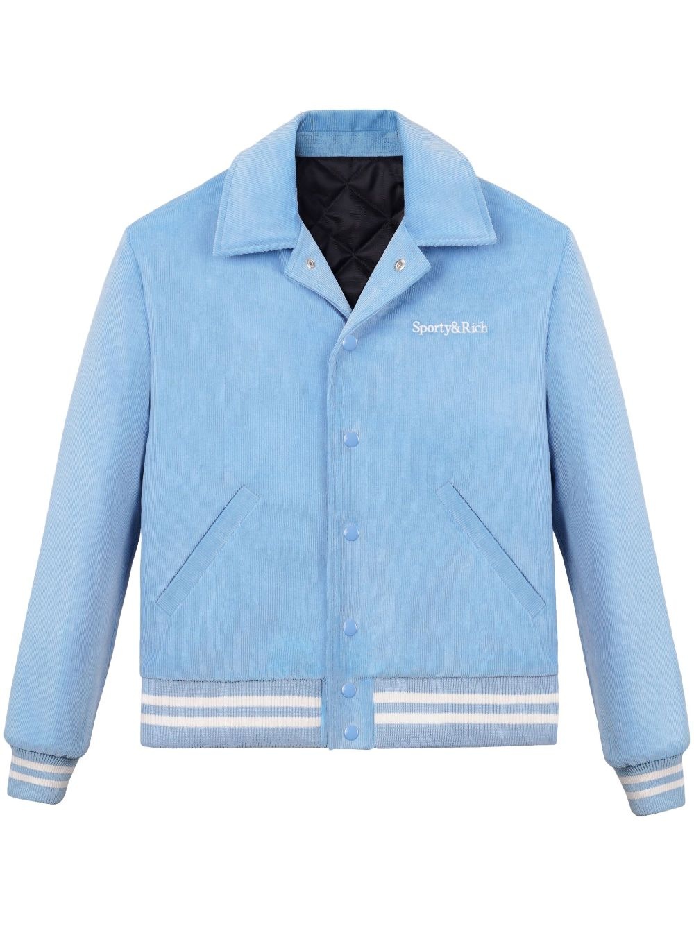 Wellness Club corduroy jacket Highlights - Baby blue/optical white - Cotton - Corduroy - Embroidered logo at the chest - Slogan patch to the rear - Notched collar - Front press-stud fastening - Long sleeves - Ribbed cuffs and hem - Straight hem - When buying this unisex item, keep in mind that it is graded in standard men's sizing. Imported Composition Cotton 100%
