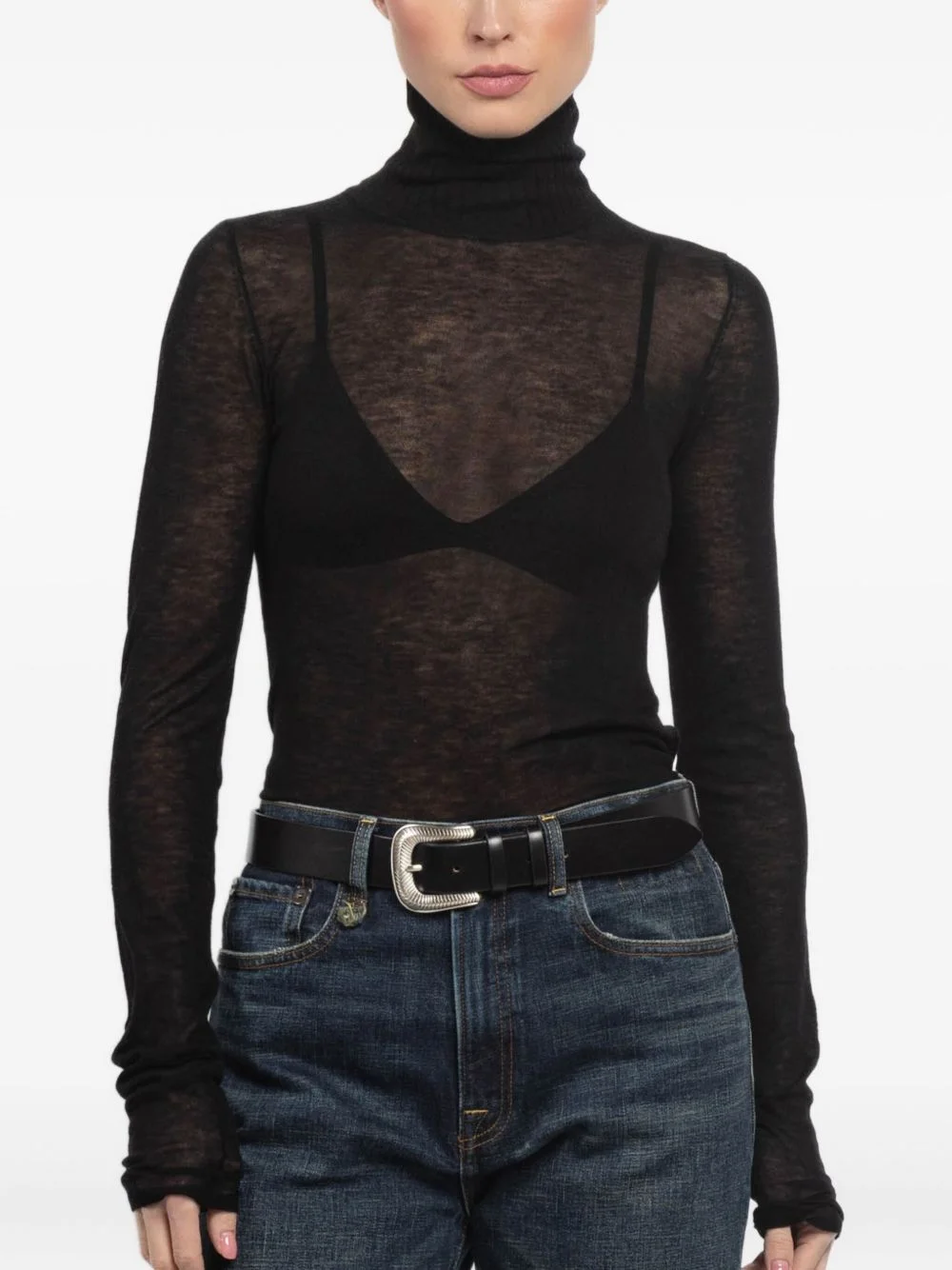 turtleneck long-sleeve top Highlights - Black - Turtleneck - Long sleeves - Sheer finish Imported Composition Organic Cashmere 100% Washing instructions Dry Clean Only