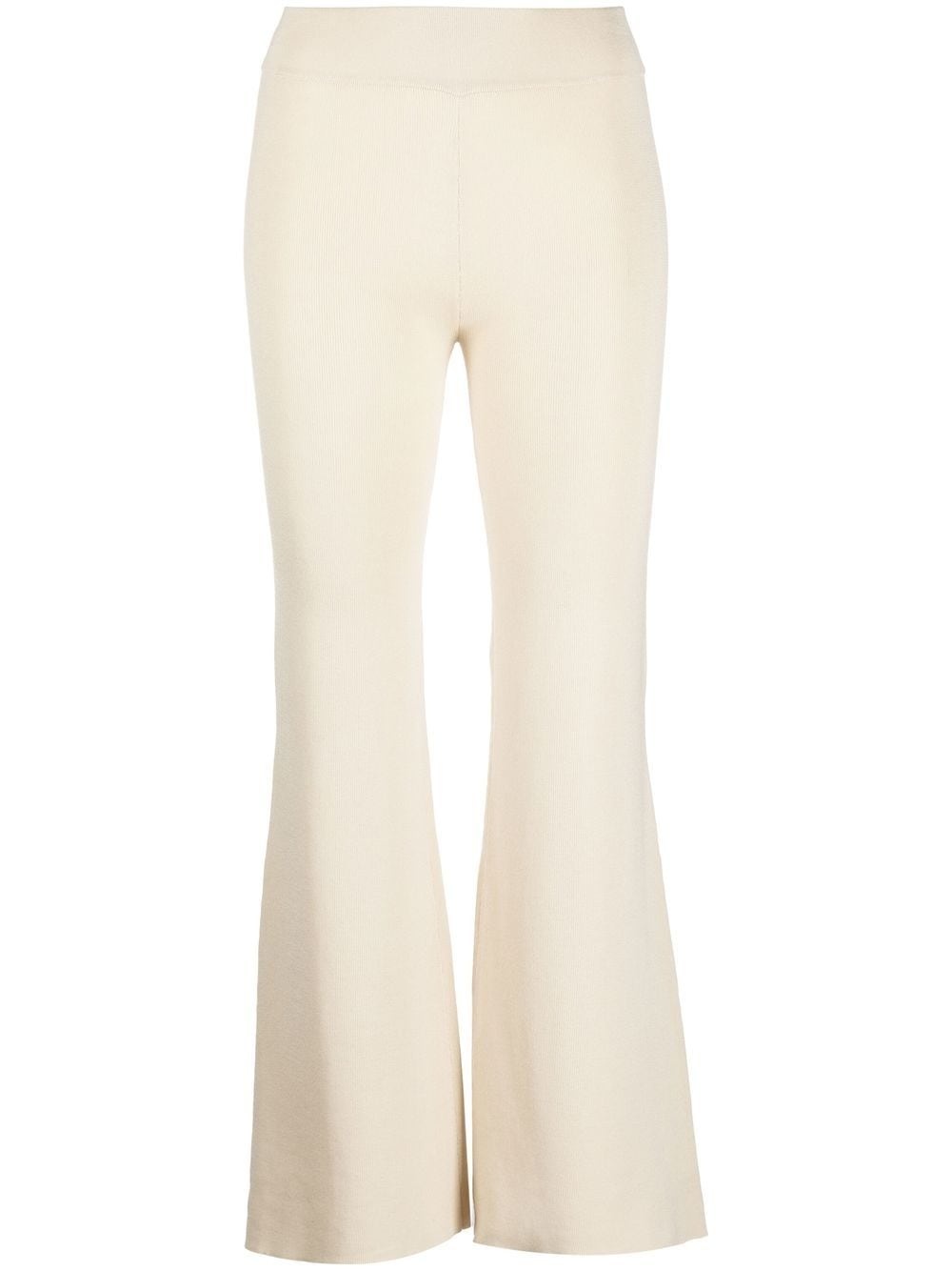 flared knitted pants ecru TENCEL™ Lyocell knitted construction elasticated waistband mid-rise flared cropped leg Imported Composition TENCEL™ Lyocell (LENZING) 82%, Nylon 18% SIZE & FIT Model measurements Height 5 ft 10 in(1.77 m) Bust/Chest 29.92 in(76 cm) Hips 34.25 in(87 cm) Waist 23.62 in(60 cm) FittingInformation This piece fits true to size. We recommend you get your regular size Designed to be fitted at the waist and through the thigh, loose from the knee Made with a mid-weight fabric Washing instructions Dry Clean Only